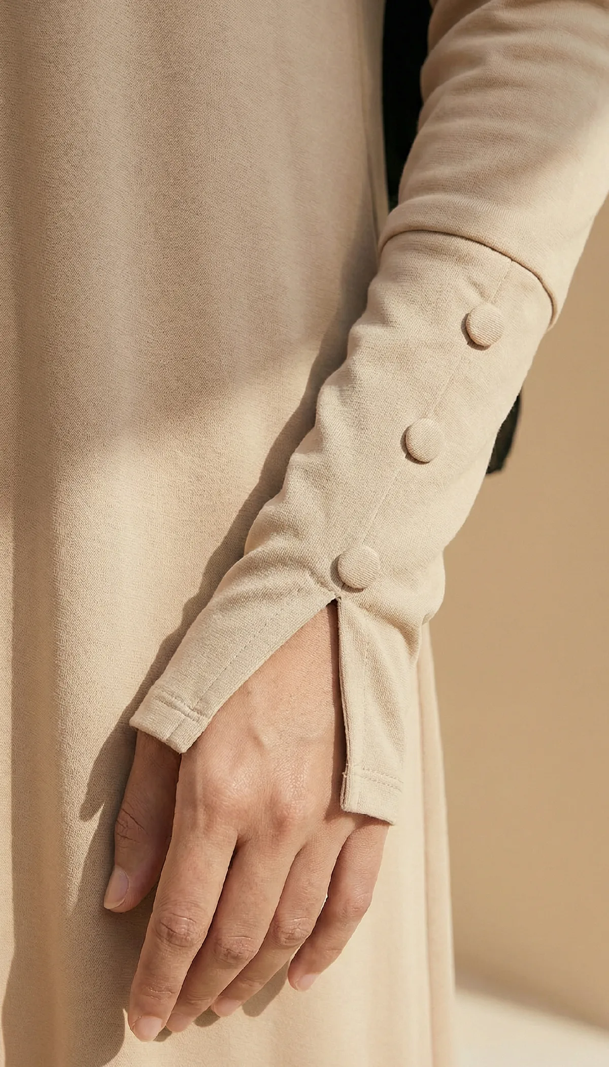 The soft beige tone complements every skin tone and pairs seamlessly with your existing wardrobe. Notice the carefully placed button details along the sleeves—a subtle...